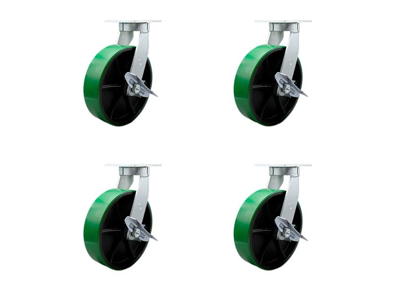 EXTRA HEAVY DUTY 10” X 3” GREEN POLY ON CAST IRON SWIVEL CASTER SET FOR CRANES