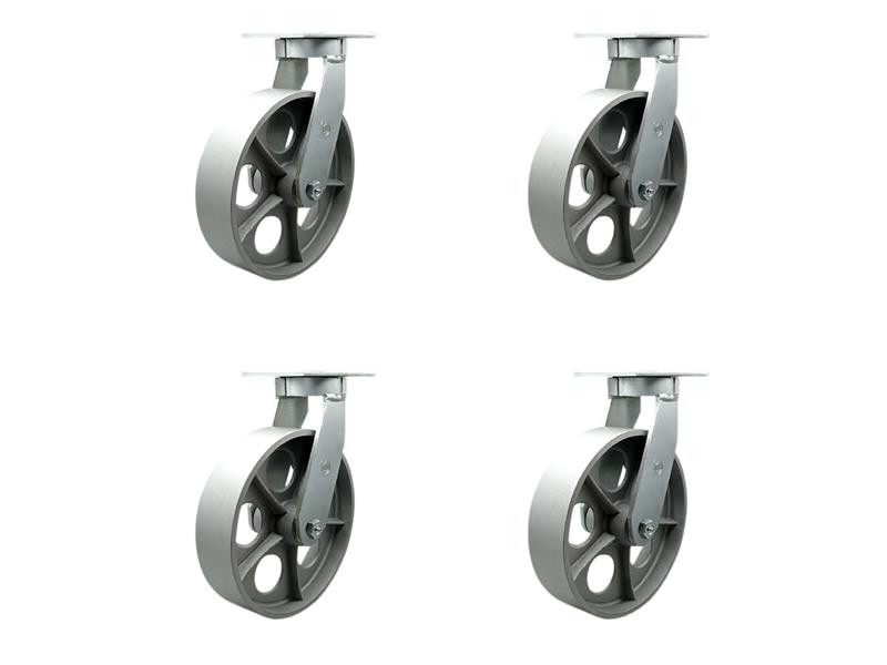 EXTRA HEAVY DUTY 12” X 3” SEMI STEEL CAST IRON SWIVEL CASTER SET FOR CRANES